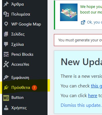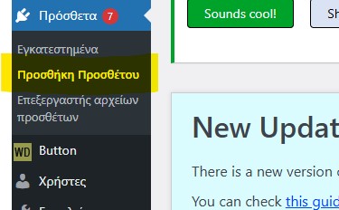 - Από το κατακόρυφο μενού του Πίνακα Ελέγχου της ιστοσελίδας σας επιλέγετε “Πρόσθετα”