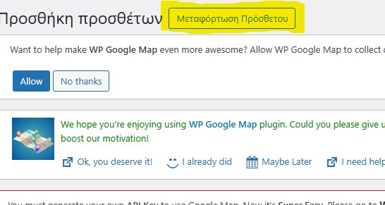 5. Από την σελίδα που θα μεταβείτε, στο πάνω μέρος της, θα επιλέξετε “Μεταφόρτωση Πρόσθετου”